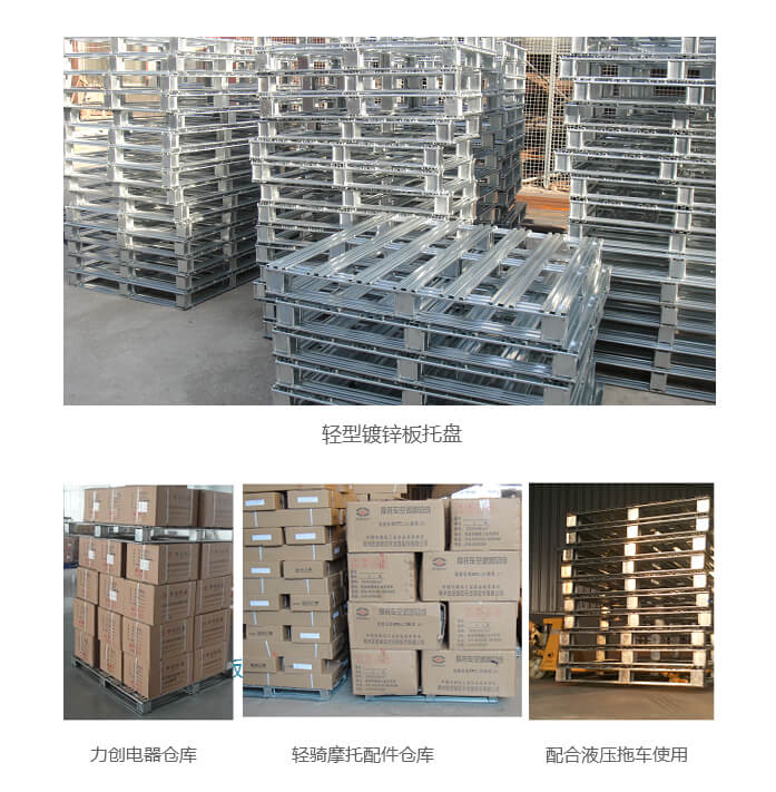 輕型B型鍍鋅托盤 產(chǎn)品用途: 本產(chǎn)品采用上海寶鋼大鋅花0.5—1.0mm厚的鍍鋅板軋壓變形,優(yōu)點(diǎn)質(zhì)量輕承重好,焊點(diǎn)處涂銀粉油漆或植物桐油防止焊點(diǎn)生銹。應(yīng)本產(chǎn)品熱鍍鋅層面工藝,防銹能力非常強(qiáng),廣泛用于輕工業(yè)制造,如冷鏈、食品車間生產(chǎn)、酒水制造,電子制造倉儲與周轉(zhuǎn)。對比木板托盤免熏蒸,常作為隨貨底托,隨產(chǎn)品一次性出口。提示:不建議上貨架,如上貨架,主材厚度1.2mm。